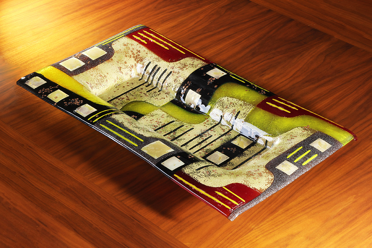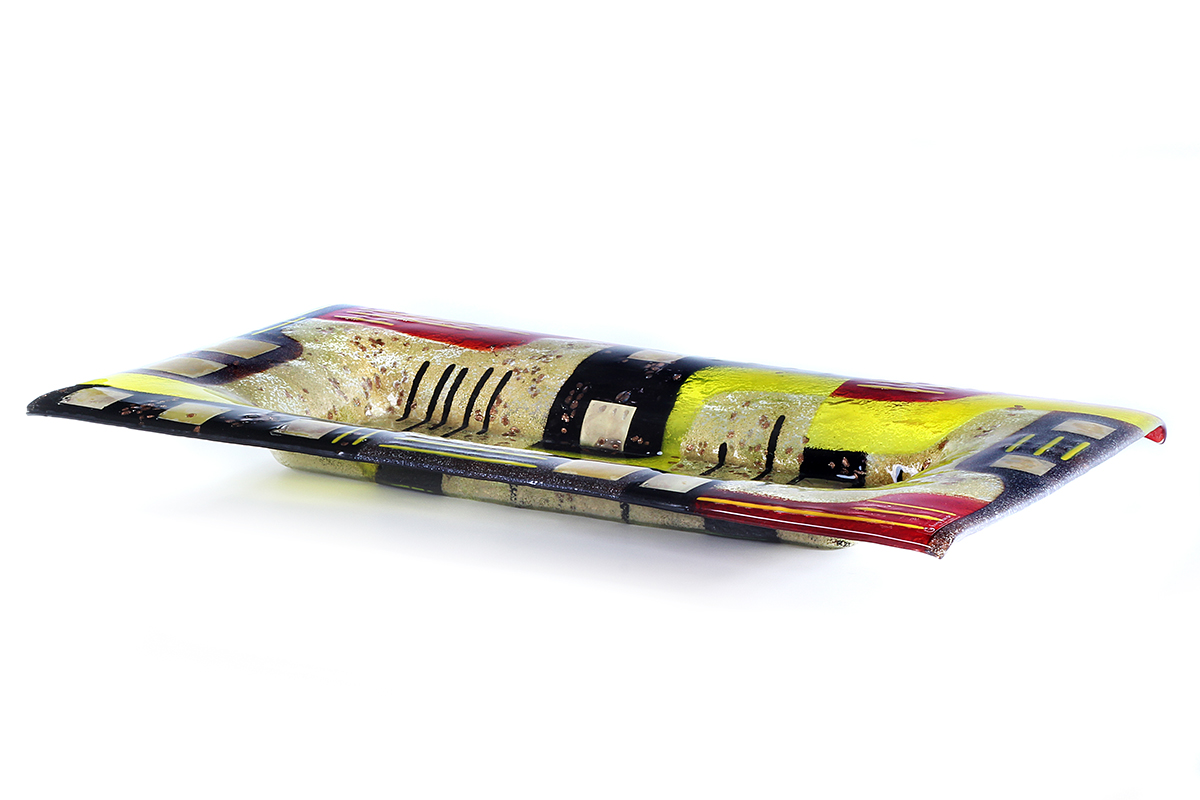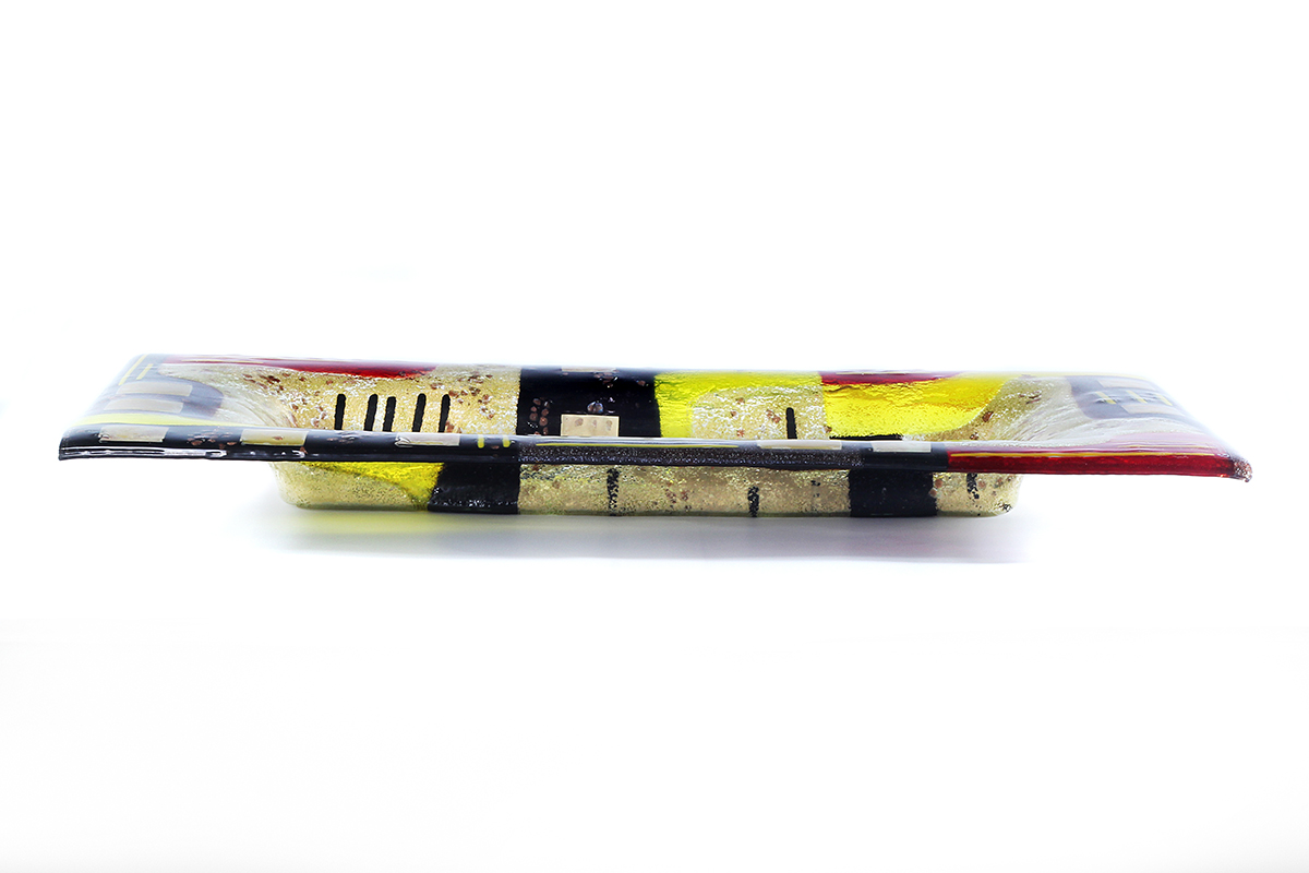 Sandy Gold Black Yellow Red Glass Rectangular Platter – Naxos Collection